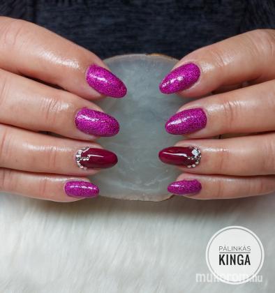Neon pink körmök csillámmal