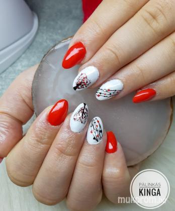 Mintás Piros és fehér körmök