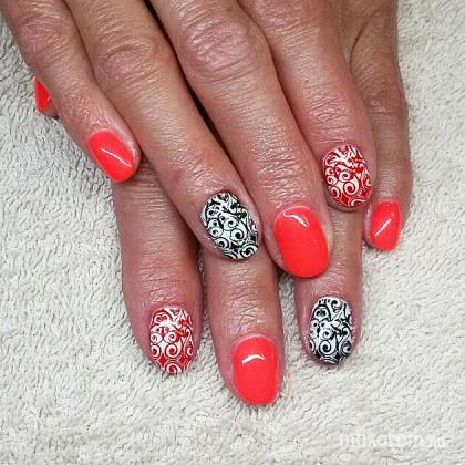 Korall és fehér géllakk nyomdával