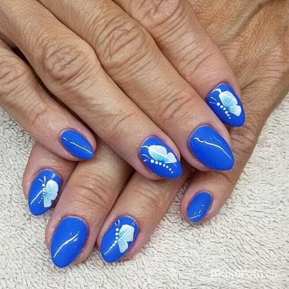 Kék műköröm festett pillangóval