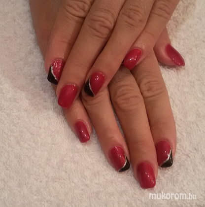 Piros zselés köröm fekete díszítéssel