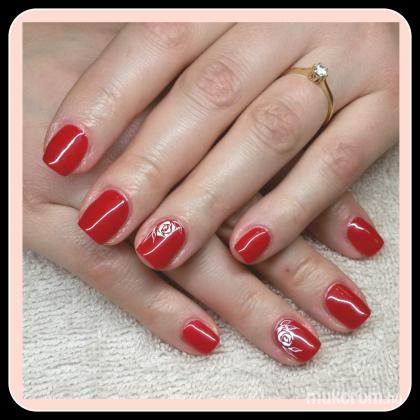 Piros géllakk festett fehér rózsával