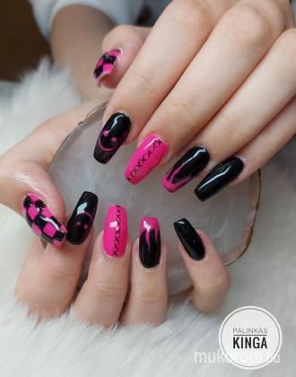Fekete és neon rózsaszín körmök