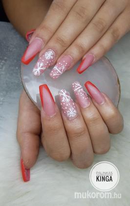 Karácsonyi Piros francia körmök és hópihe minta