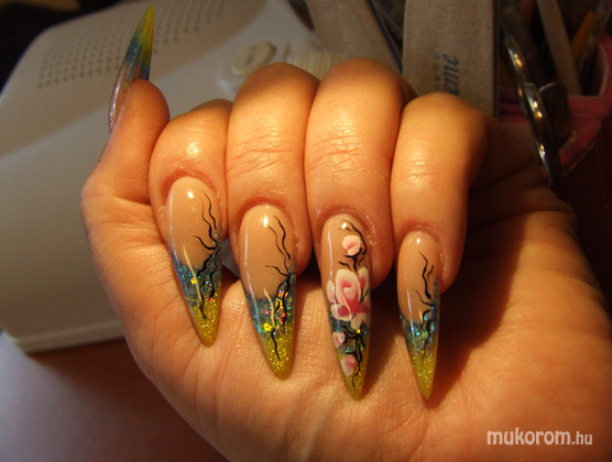 gellac csillámmal és virágokkal