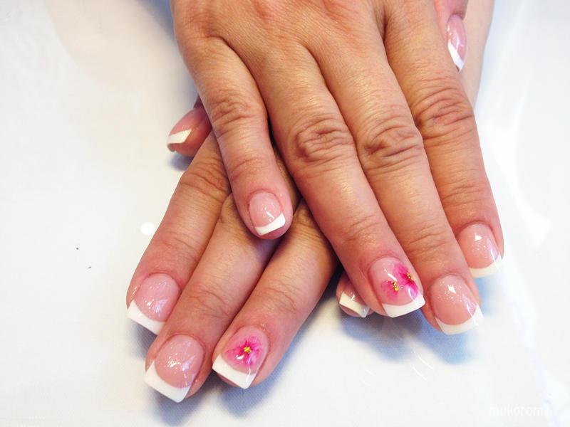 Épített francia zselé akril díszítéssel