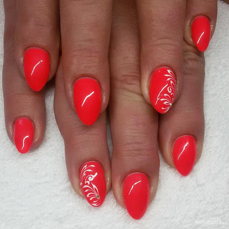 Korallpiros műköröm festett mintával
