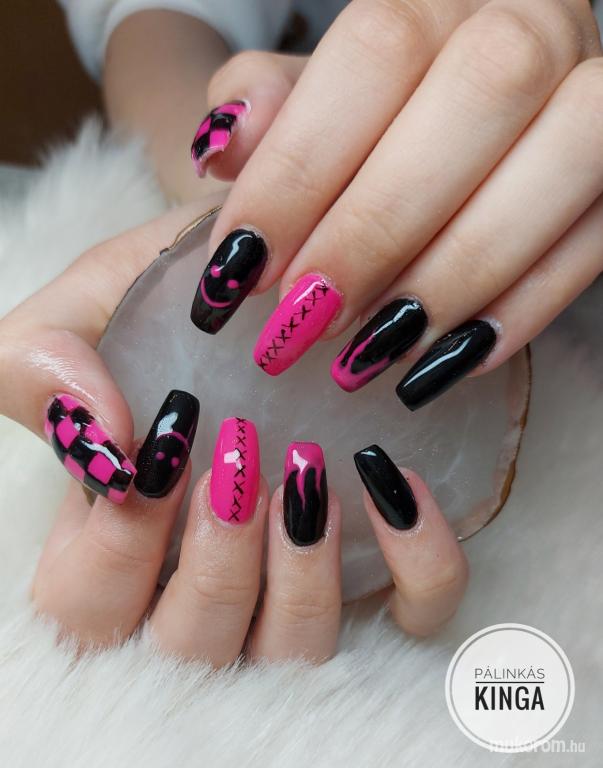 Fekete és neon rózsaszín körmök