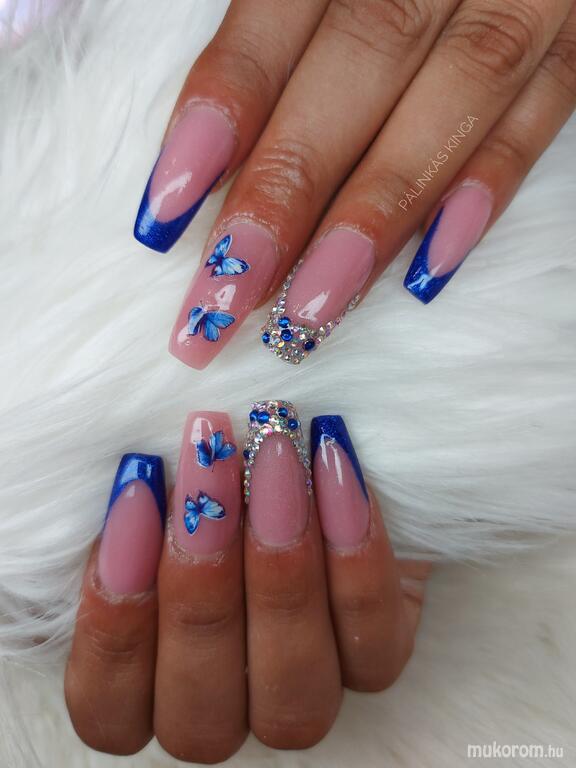 Pillangós kék francia körmök
