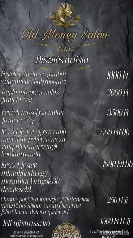Díszítési árlista